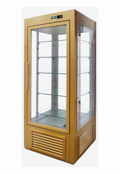 Внешний корпус выполнен из оцинкованной стали, внутренняя демонстрационная часть шкафа - из нержавающей кислотоупорной стали. Двери открывающиеся со стеклопакетом с возможностью выбора направления открывания. Для более успешного привлечения внимания покупателей есть встроенная светодиодная подсветка, поэтому у посетителей есть прекрасная возможность рассмотреть кондитерские изделия более внимательно.