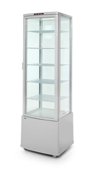 Внешний корпус выполнен из высококачественной нержавеющей стали, окрашеной в белый цвет, полки с белым покрытием из ПВХ. Cтекло витрины двойное, дверца расположена спереди и легко открывается.