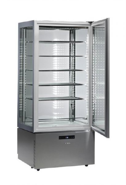 - легкая конструкция с незаметной встроенной ручкой визуально увеличивает пространство для экспозиции кондитерских изделий и оптимизирует видимость от нижней до самой верхней полки;