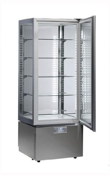 - легкая конструкция с незаметной встроенной ручкой визуально увеличивает пространство для экспозиции кондитерских изделий и оптимизирует видимость от нижней до самой верхней полки;