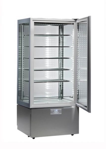 - легкая конструкция с незаметной встроенной ручкой визуально увеличивает пространство для экспозиции кондитерских изделий и оптимизирует видимость от нижней до самой верхней полки;