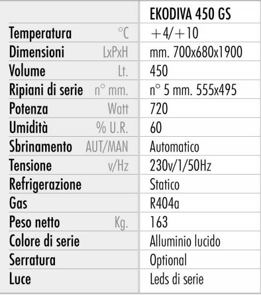 Технические характеристики кондитерского шкафа Tecfrigo EKODIVA 450 GS: