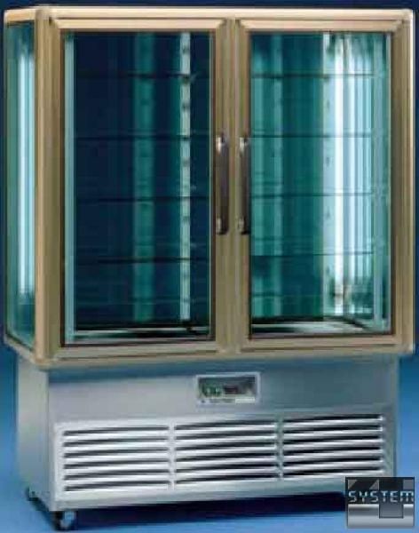 Шкафы выполнены из профильного алюминия. Стеклянные стенки и двери из стеклопакетов обеспечивают хорошую теплоизоляцию и всесторонний обзор внутреннего объема. Применены подсветка и принудительное охлаждение.