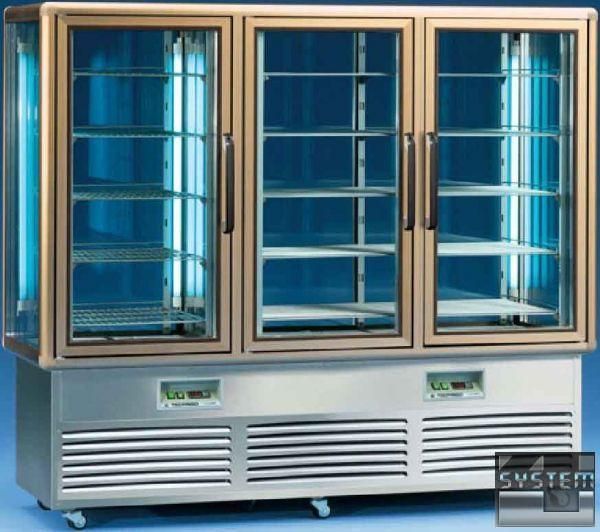 Шкафы выполнены из профильного алюминия. Стеклянные стенки и двери из стеклопакетов обеспечивают хорошую теплоизоляцию и всесторонний обзор внутреннего объема. Применены подсветка и принудительное охлаждение.
