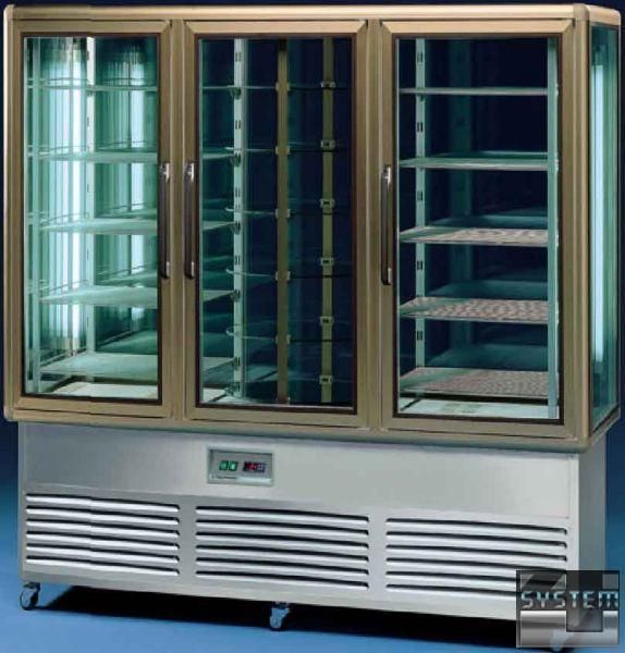 Шкафы выполнены из профильного алюминия. Стеклянные стенки и двери из стеклопакетов обеспечивают хорошую теплоизоляцию и всесторонний обзор внутреннего объема. Применены подсветка и принудительное охлаждение.