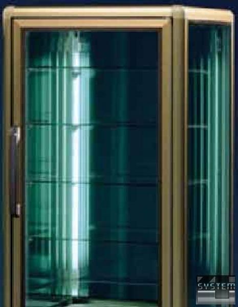 Шкафы выполнены из профильного алюминия. Стеклянные стенки и двери из стеклопакетов обеспечивают хорошую теплоизоляцию и всесторонний обзор внутреннего объема. Применены подсветка и принудительное охлаждение.