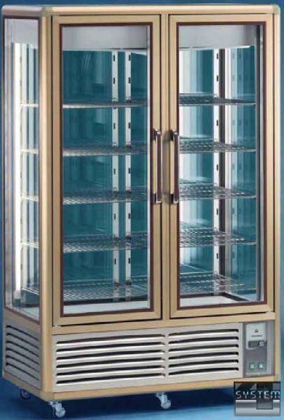 Шкафы выполнены из профильного алюминия. Стеклянные стенки и двери из стеклопакетов обеспечивают хорошую теплоизоляцию и всесторонний обзор внутреннего объема. Применены подсветка и принудительное охлаждение.