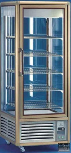 Шкафы выполнены из профильного алюминия. Стеклянные стенки и двери из стеклопакетов обеспечивают хорошую теплоизоляцию и всесторонний обзор внутреннего объема. Применены подсветка и принудительное охлаждение.