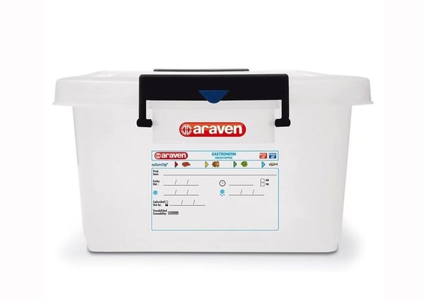 На пластиковом контейнере Araven предусмотрена вплавленная этикетка, где можно ставить метки для отслеживания. Это позволяет специалисту на профессиональной кухне идентифицировать содержимое и сохранить информацию, связанную с его происхождением.