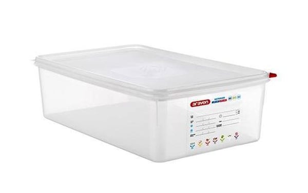 Пищевая емкость GN 1/1 Araven также включает в себя цветные клипсы, с помощью которых можно управлять пищевыми продуктами и на большой вплавленной этикетке гастроконтейнера ставить метки для отслеживания. Это позволяет специалисту на профессиональной кухне идентифицировать содержимое и сохранить информацию, связанную с его происхождением.