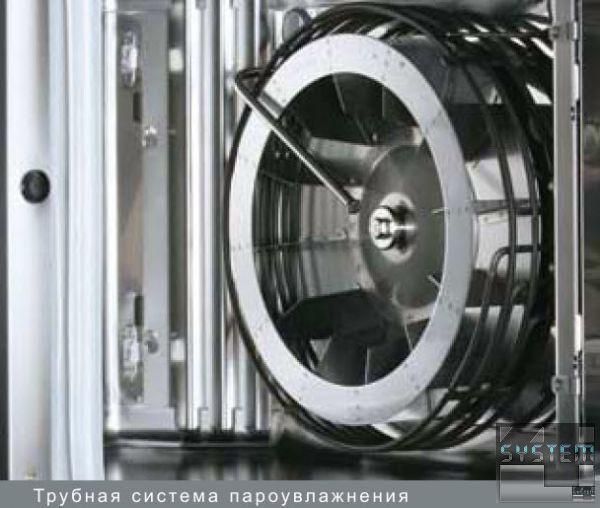 - ТРУБНАЯ СИСТЕМА ПАРОУВЛАЖНЕНИЯ – точная порция для индивидуальных результатов: в оптимизированной по мощности системе пароувлажнения вода через трубку подается прямо в центр крыльчатки вентилятора. При вращении крыльчатки вентилятора вода распыляется в пекарной камере.