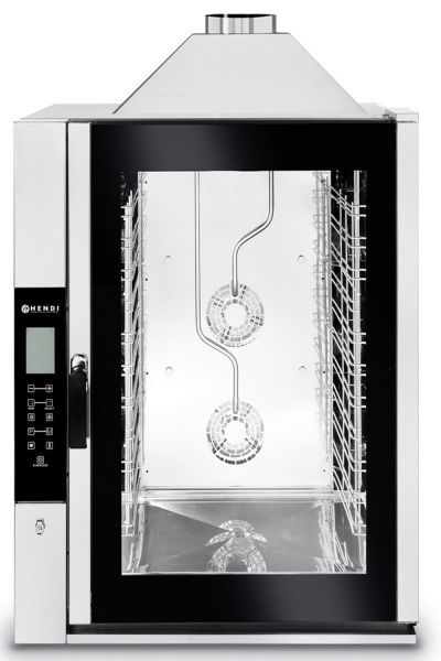 Конвекционная мини печь Hendi оснащена сенсорной панелью управления, интерактивное меню которой - на 10 языках (в том числе и на русском). Также, при помощи сенсорной панели, предусмотренна 10-уровневая регулировка пароувлажнения.