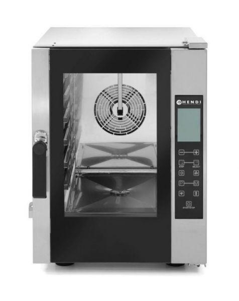 Печь пароконвекционная Hendi 224793 - универсальное тепловое оборудование, идеально подойдет для использования в ресторанах, столовых, сетевых и продуктовых магазинах. За счет, небольшой ширины - 50 см, печь Hendi 224793 позволяет экономить рабочее пространство на кухне.