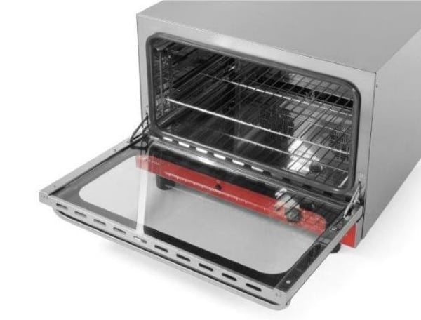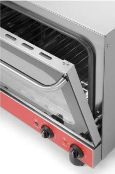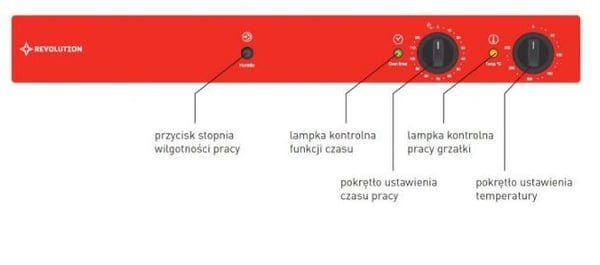 Конвекционная мини печь оснащена механической панелью управления, на которой предусмотрены регуляторы температуры и пароувлажнения, и таймер. Все выполняемые функции отображаются световыми индикаторами