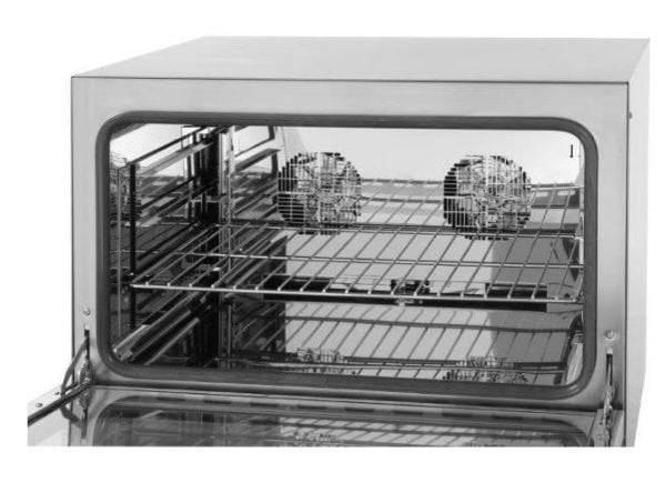 Дверь оснащена двойным стеклом (толщина каждого 4 мм) и съемным уплотнителем двери, которое обеспечивает хорошую теплоизоляцию, а также стеклянная дверь и внутренне освещение позволяют наглядно определить степень готовности выпекаемого изделия без открывания дверцы, тем самым сохраняя внутренний температурный режим. В дверь встроен специальный микровыключатель, который, при открытии дверного проема, способствует остановки подачи пара.