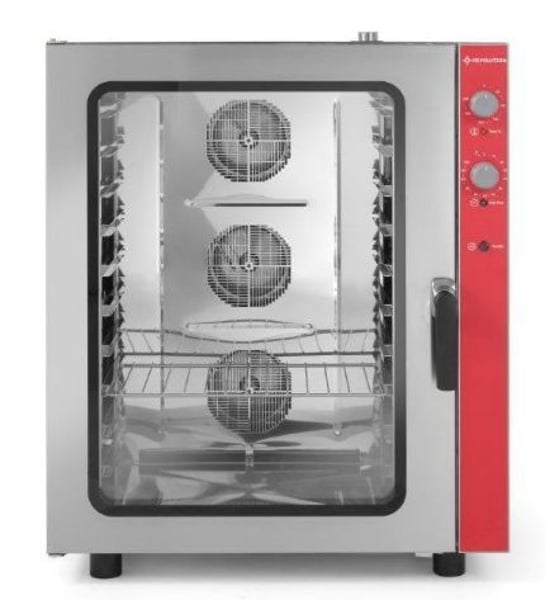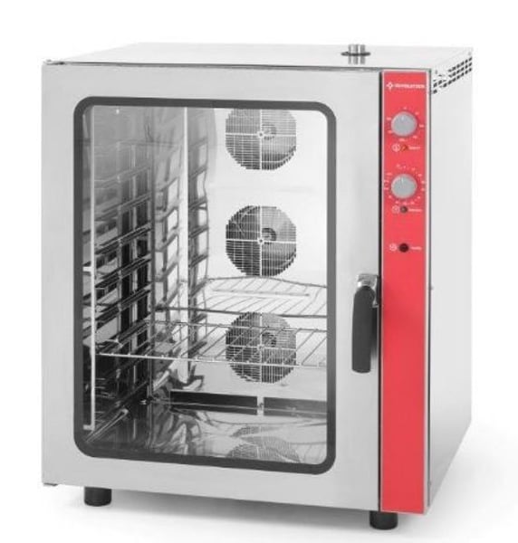 В основу работы заложен процесс конвекции, нагрев шкафа для выпечки осуществляется ТЭНами, которые нагревают воздух рабочей камеры. Далее, горячий воздух, генерируется методом "прямого впрыска" воды на ТЭН. Процесс производится 3 реверсивными вентиляторами - 2800 об/мин, которые равномерно распределяет горячую воздушную массу по всему объему печи - обеспечивая высокий теплообмен между выпечкой и окружающей средой в электрическом конвектомате.