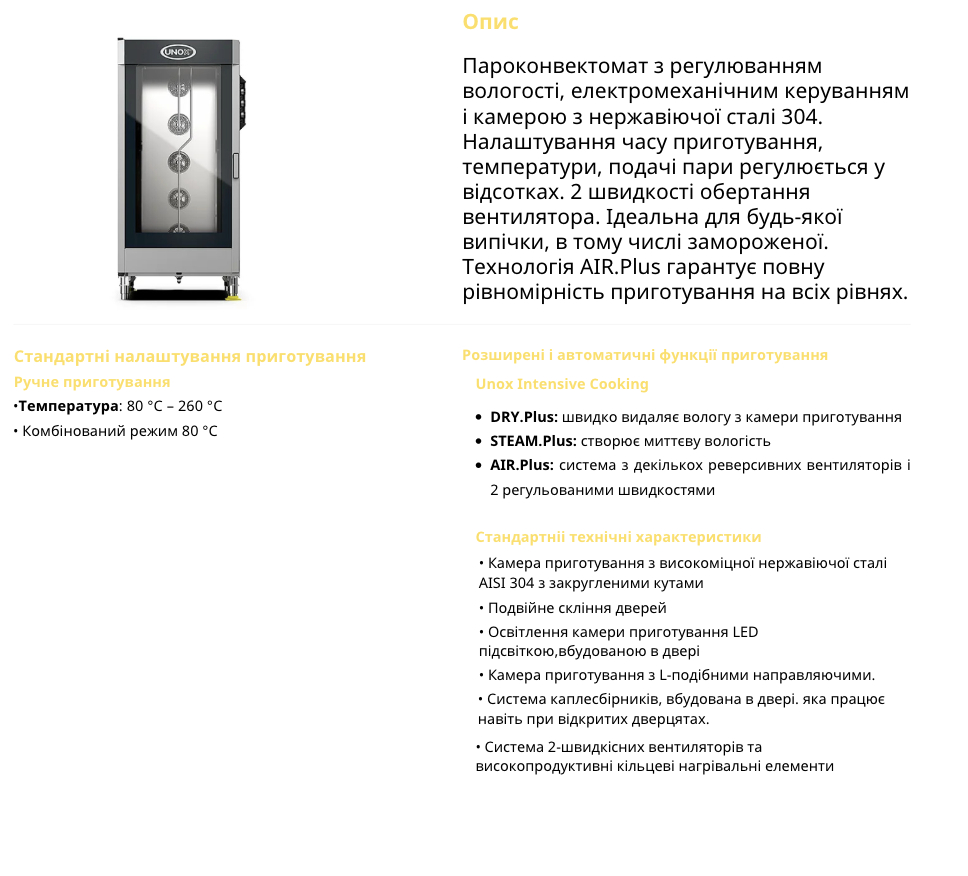 Пароконвектоматы Unox — профессиональное итальянское оборудование для ресторанов, пекарен и заведений общественного питания. Технологии Unox обеспечивают точный контроль температуры и влажности, равномерное приготовление и стабильное качество результата. Надежный пароконвектомат Unox подходит для интенсивной работы кухни, помогая оптимизировать процессы и повысить производительность.
