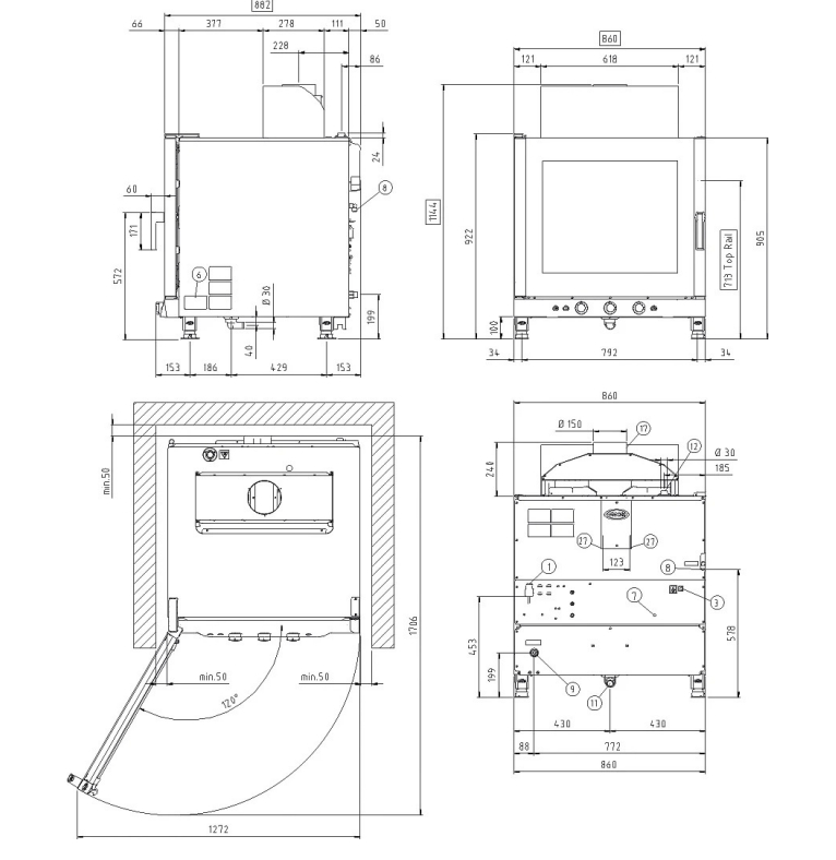 Расстояние между уровнями - 80 мм