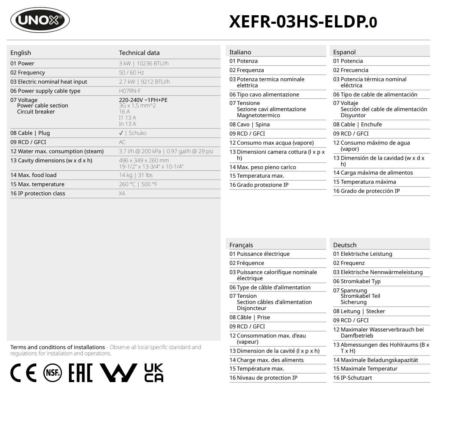 Печь конвекционная Unox XEFR-03HS-ELDP
