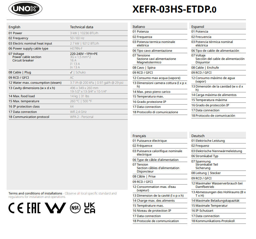 Дополнительным преимуществом приобретения конвекционной печі UNOX XEFR-03HS-ETDP с панелью управления TOUCH является наличие технологии искуственного интеллекта DATA DRIVEN COOKING.