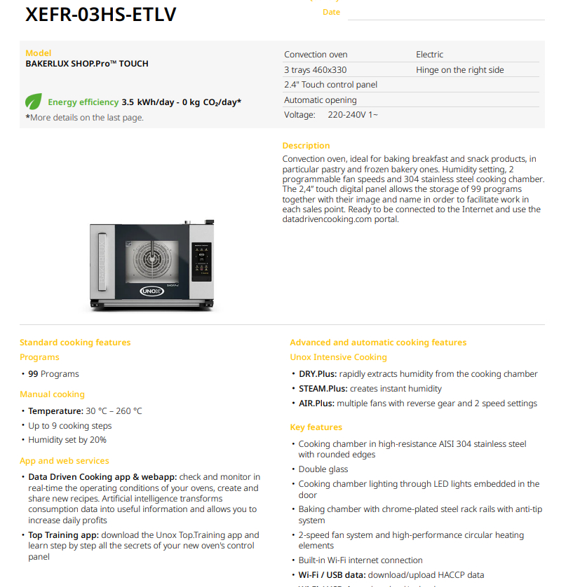 Дополнительным преимуществом приобретения конвекционной печі UNOX XEFR-03HS-ETLP с панелью управления TOUCH является наличие технологии искуственного интеллекта DATA DRIVEN COOKING.