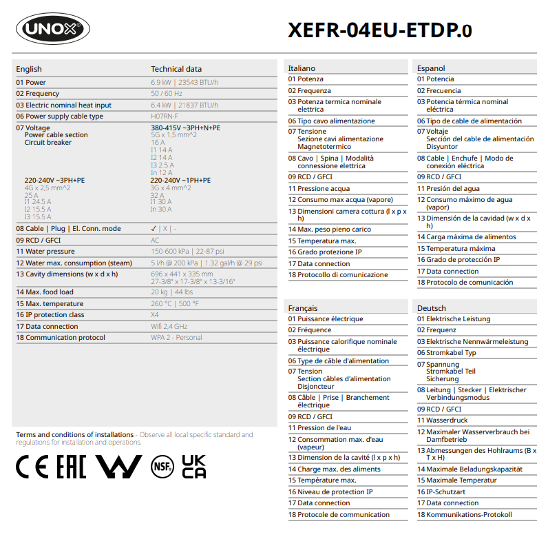 Дополнительным преимуществом приобретения конвекционной печі UNOX XEFR-04EU-ETDP с панелью управления TOUCH является наличие технологии искуственного интеллекта DATA DRIVEN COOKING.