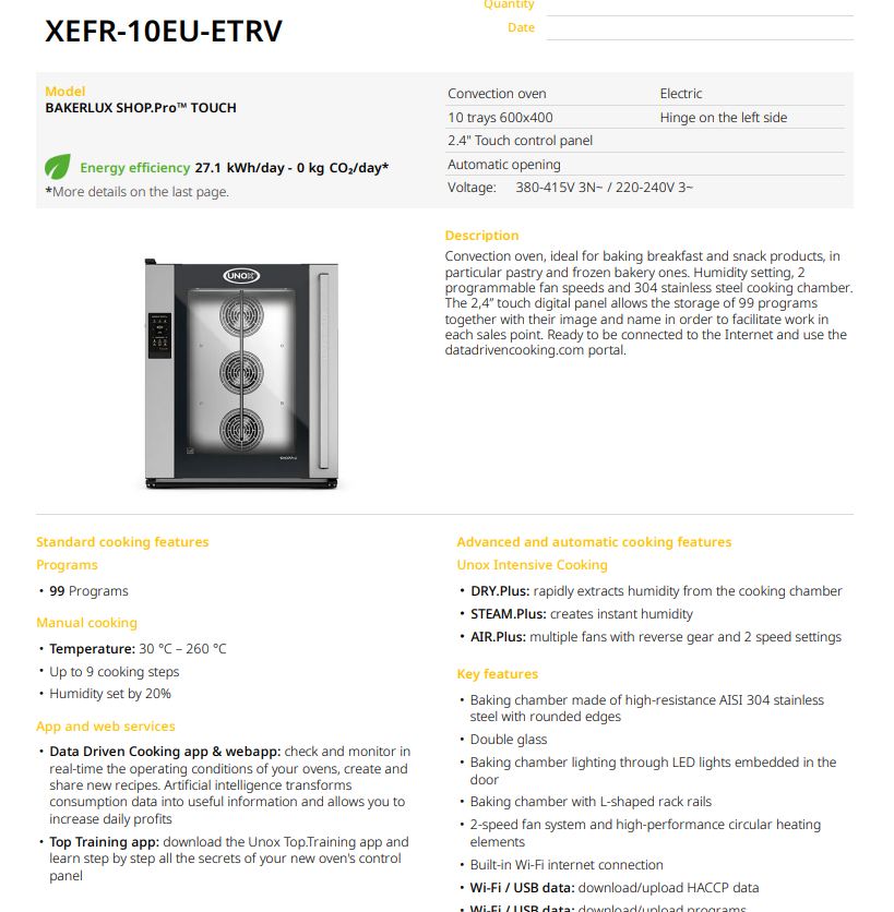 Дополнительным преимуществом приобретения конвекционной печі UNOX XEFR-06EU-ETRV-MT с панелью управления TOUCH является наличие технологии искуственного интеллекта DATA DRIVEN COOKING.