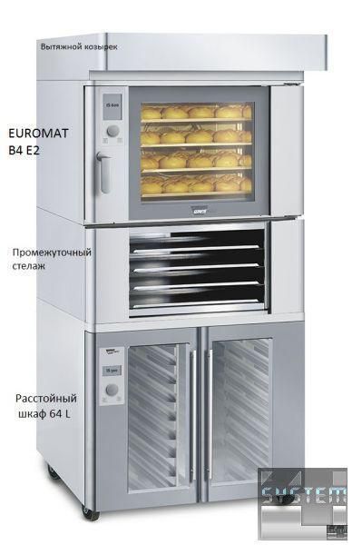 Модель входит в линейку печей для выпечки Euromat. В комбинации с расстойным шкафом, промежуточным стеллажом и вытяжным козырьком складуется целая станция выпечки, отвечающая самым высоким требованиям.