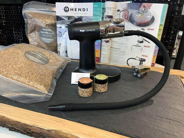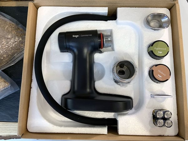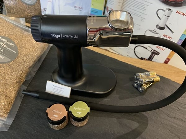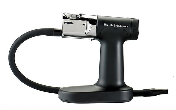 Профессиональный коптильный пистолет PolyScience оснащен экономичным и бесшумным двигателем с ручкой управления потоком воздуха.