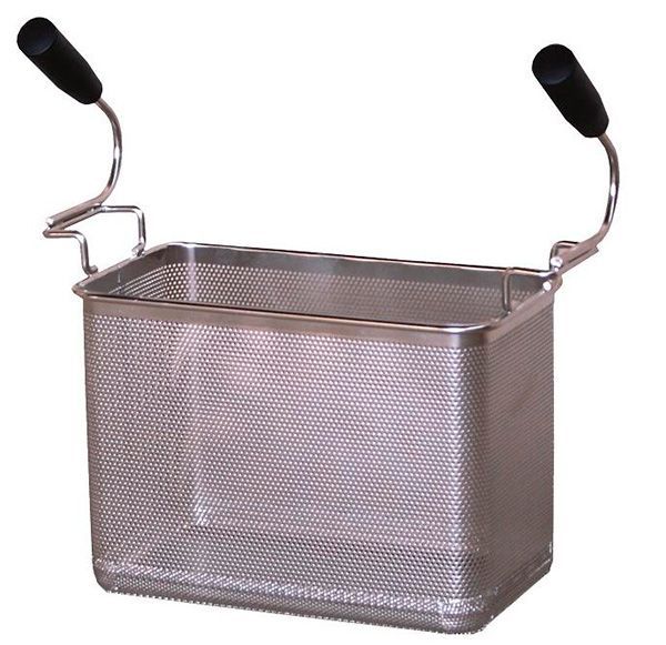 Перфорированная корзина к макароноварке выполнена из высококачественной нержавеющей стали, имеет скруглённые края и углы, оснащена двумя термостойкими пластиковыми ручками.