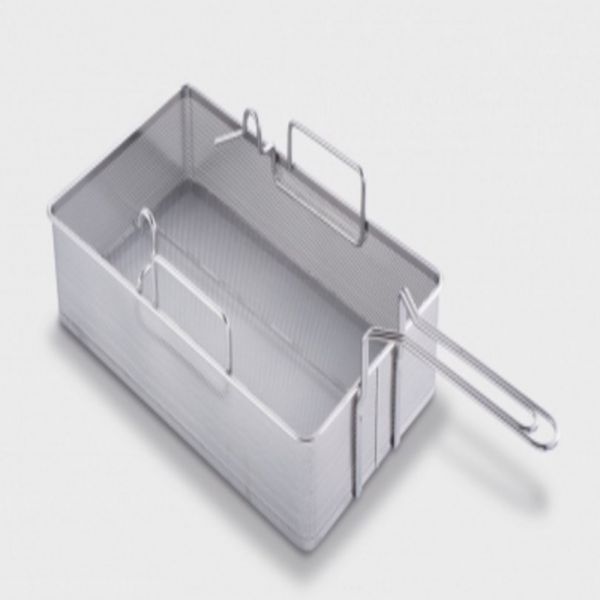 Корзина для макароноварки прямоугольной формы с мелкоячеистыми решётками, изготовлена из качественной нержавеющей стали.