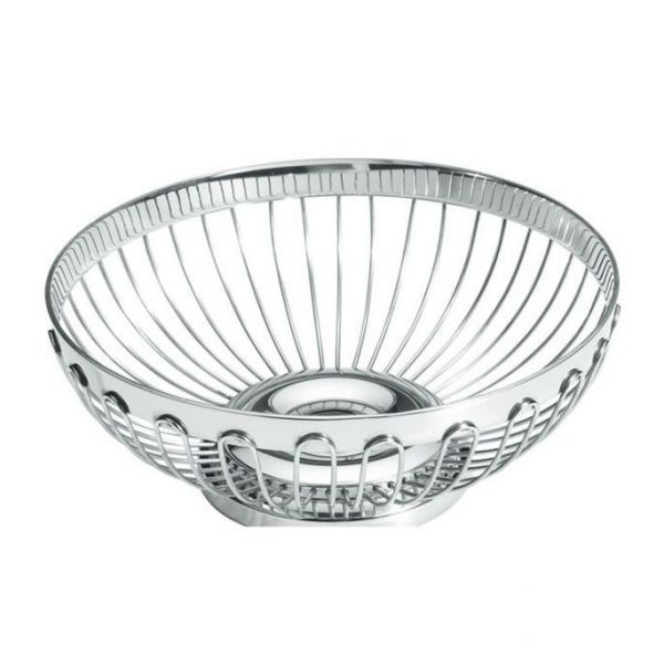 Корзина выполнена из нержавеющей стали. Круглой формы. Подходит для хлебобулочных изделий и фруктов.
