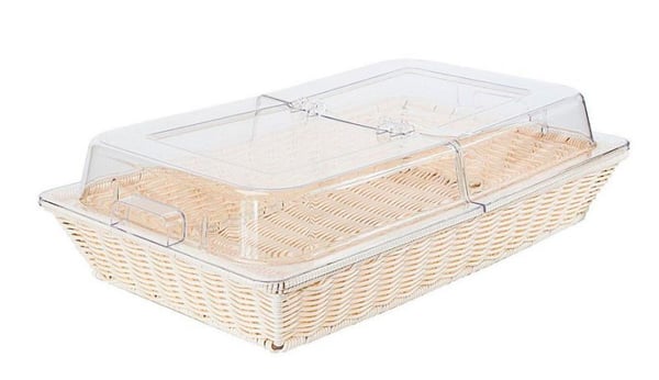 Корзина прямоугольная с открывающейся крышкой-колпаком предназначена для выкладки хлебобулочных изделий.