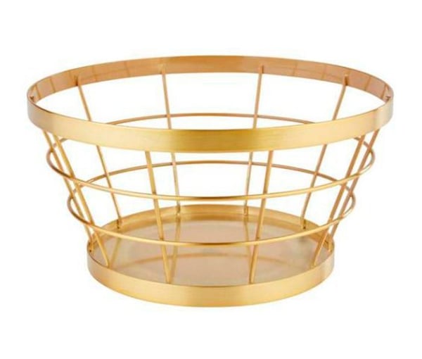 Стойка для фруктов в виде корзинки позолоченого цвета предназначена для сервировки стола и относится к премиум сегменту профессиональных приборов сервировки для ресторанов.
