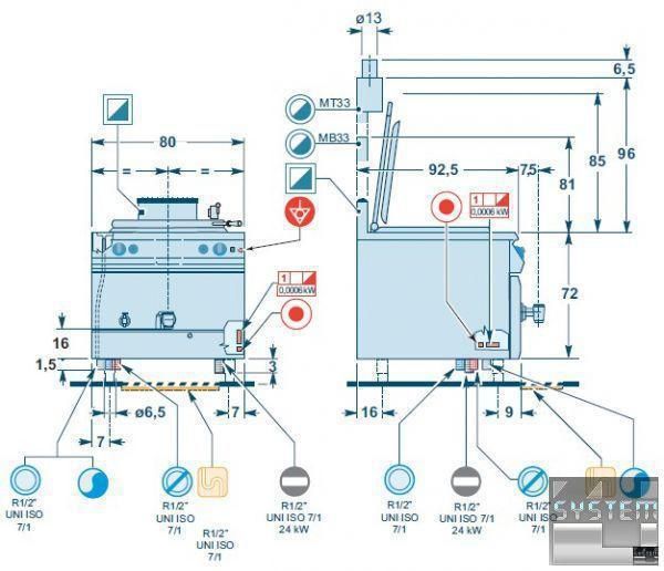 Технические характеристики котла пищеварочного Angelo Po 191PI2GA: