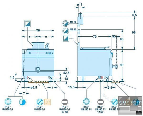 Технические характеристики котла пищеварочного Angelo Po 1G1PD1G: