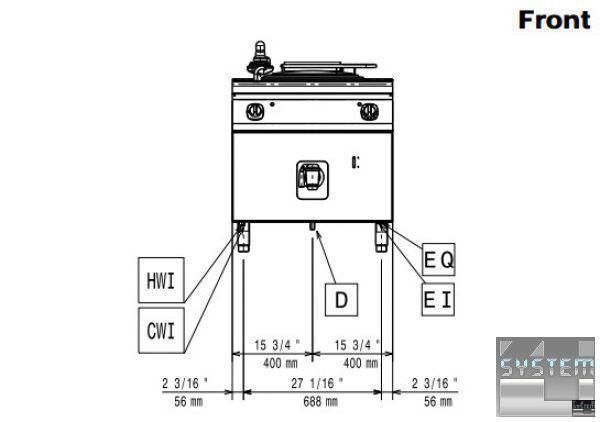 Котел электрический Electrolux e7bsehinf0 имеет мощностью 9,4кВт. Цельнотянутая емкость объемом 60л. и Ø420 мм из нерж. стали AISI 316, непрямой нагрев, предохранительный клапан, манометр, регулятор мощности, сливной кран, закруглённые углы ёмкости, термостат безопасности, подача воды через соленоидный клапан, толщина металла рабочей поверхности аппарата 1,5 мм. Котёл имеет габаритные размеры: 800мм (длина), 730мм (глубина), 850мм (высота) и весит 100кг. Устройство питается от трехфазной сети с напряжением 400В и частотой 50 Гц. Оснащена индикатором работы и контроля напряжения. Рабочая поверхность из нержавеющей пищевой стали AISI 304 с полировкой Scotch Brite.
