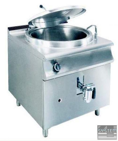 Основная часть сделана из сатинированного хромоникелевого листа 18/8 н/с. Покрытие с двойными стенками специально разработано для упрочнения. Температура регулируется в пределе 60-180 °C посредством многоуровневого термостата. Непрямая готовка при помощи масла в кожухе. Температура кипения масла в кожухе составляет около 2000С. Оборудован вентилями для наполнения воды (горячей/холодной) и ее опустошения. С целью предотвращения случайного открытия специально для приготовленной пищи разработан вентиль безопасного опустошения. В случае неполадки ограничительный термостат автоматически прекращает подачу энергии. Все электрические приборы и механизмы соответствуют международным стандартам.