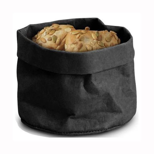Мешок для хлеба из крафта создан в черном цвете, а сверху подчеркнут оригинальным ободком, благодаря чему, мешок для выпечки сделает ежедневную трапезу более необычной и гармоничной.