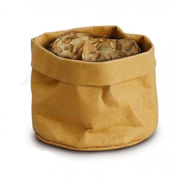 Мешок для хлеба из крафта созданный в бежевом цвете, а сверху подчеркнут оригинальным ободком, благодаря чему, мешок для выпечки сделает ежедневную трапезу более необычной и гармоничной.