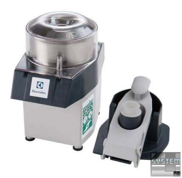 Овощерезка/куттер Electrolux 603844 производительностью до 250 кг/час для овощерезки, ёмкость для куттера 3 л. из нерж.стали, импульсная водонепроницаемая панель управления, двойное отверстие для загрузки продукта, фиксируемая скорость оборотов двигателя 300 и 1500 об/мин. с автопереключателем, загрузочный бункер из нержавеющей стали для овощерезки, нож с мелкими зубчиками для куттера, корпус - ABS с полиуритановым покрытием.