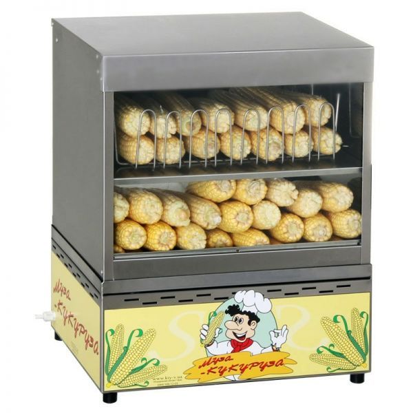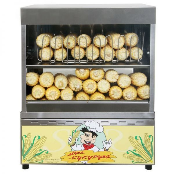 Задняя стенка выполнены из стекла, что позволяет покупателям видеть процесс приготовления. Загрузка до30 качанов кукурузы, время разогрева до 15мин, приготовление - 30-40мин.
