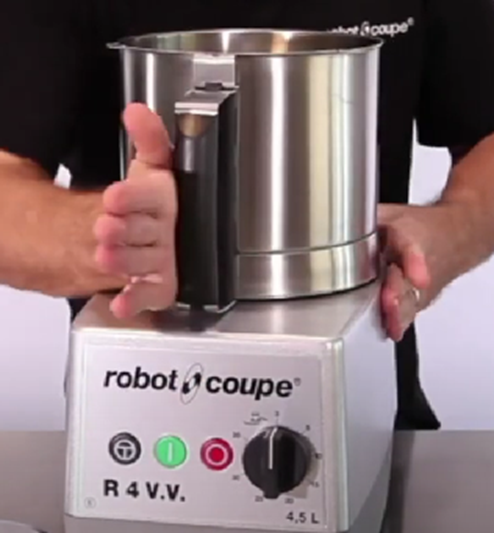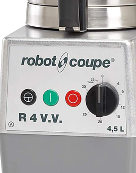 Модель кутера Robot-Coupe R 4 V.V. разработана для измельчения, приготовления тонких фаршей, паштетов, кремов и соусов, взбивания сливок, эмульсий и муссов, размола и замешивания теста, измельчения зелени, специй, суфле путем быстрого и тонкого измельчения продуктов – сухофруктов, орехов, шоколада, сухарей, вафель. Куттер позволяет даже замешивать тесто как на пельмени.Также позволяет рубить мясо на мелко рубленую и кнельную массу, измельчать лук, чернослив, курагу, кальмары, вареное мясо, творог, вареные яйца.