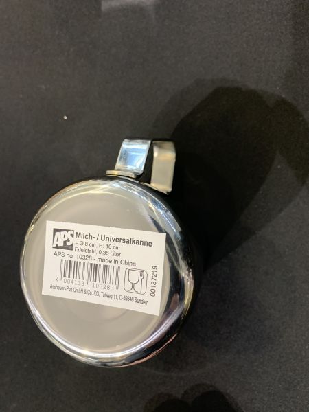 Кувшин с ручкой для вспенивания молока выполнен из высококачественной нержавеющей стали - материал наиболее устойчивый к внешним воздействиям и механическим повреждениям, отполированный снаружи и матовый внутри.