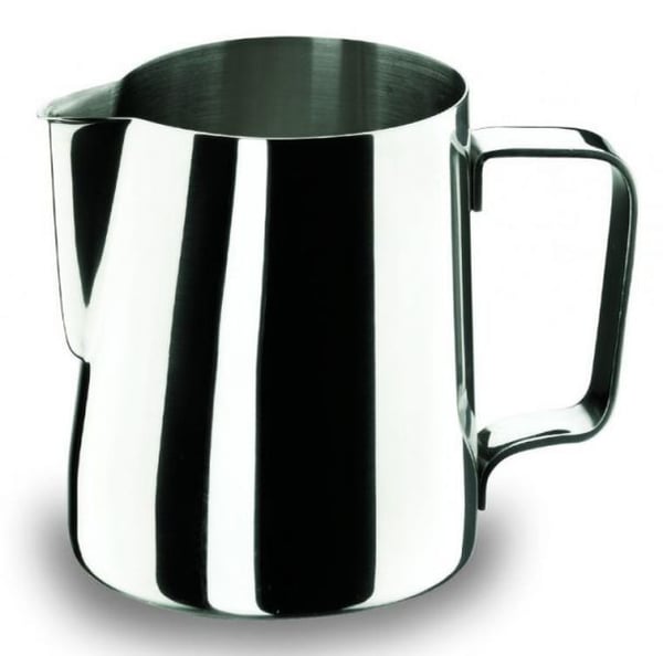 Кувшин с ручкой для вспенивания молока выполнен из высококачественной нержавеющей стали - материал наиболее устойчивый к внешним воздействиям и механическим повреждениям, отполированный снаружи и матовый внутри.