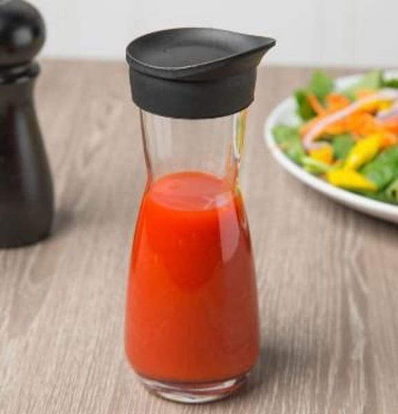 Стеклянный прозрачный графин с чёрной силиконовой крышкой серии Ensemble - это функциональный дизайн, отвечающий самым современным требованиям и практичная крышка, плотно прилегающая к горлышку, позволяют держать в нём любые компоненты, от травяных настоев до лёгких соусов, и используется для элегантной сервировки стола в ресторанах, барах, кафе и других предприятиях HoReCa.