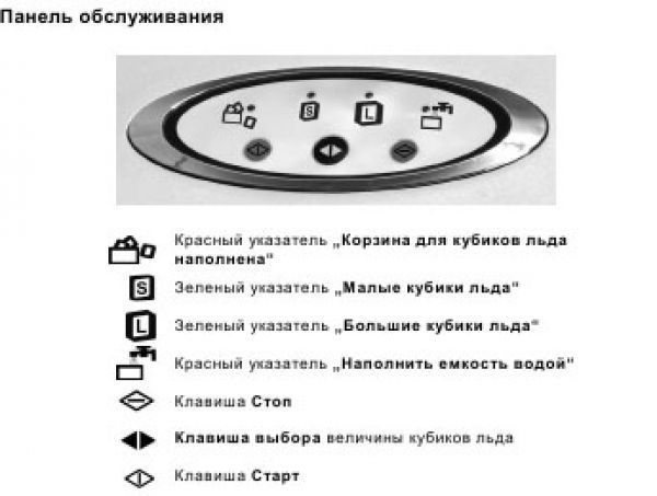 Может изготавливать лед двух различных размеров: S • маленький, L • большой.