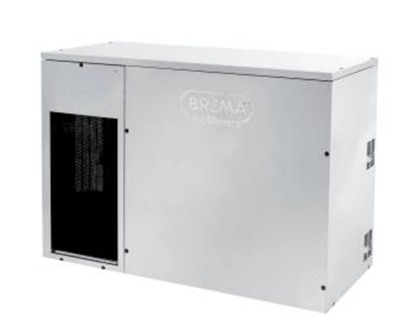 Водяное охлаждение, производительность оборудования составляет 300 кг/сутки, вес кубика 18 г, также можно приобрести льдогенераторы, производящие кубики весом 13 г, 33 г, 42 г.