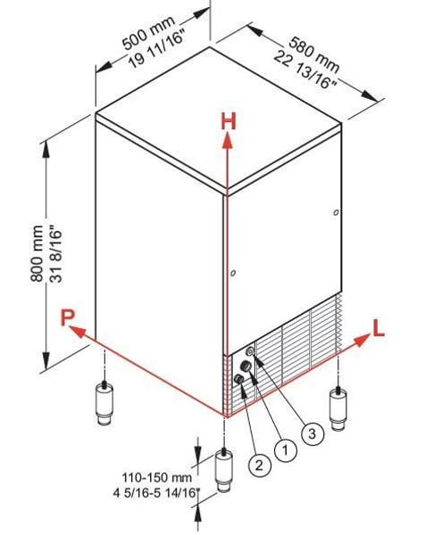 Корпус льдогенератора выполнен из высококачественной нержавеющей стали, оснащен системой автоматического поддержания уровня льда в бункере. При заполнении бункера льдогенератор прекращает выработку льда, а по мере его расходования компенсирует первоначальное количество готового льда.