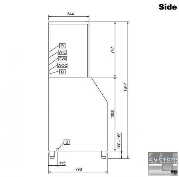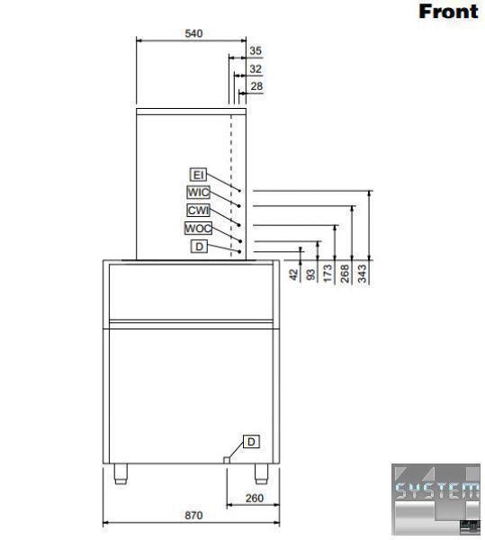 Профессиональный льдогенератор имеет габаритные размерами: 870мм (длина), 790мм (глубина), 1707мм (высота).